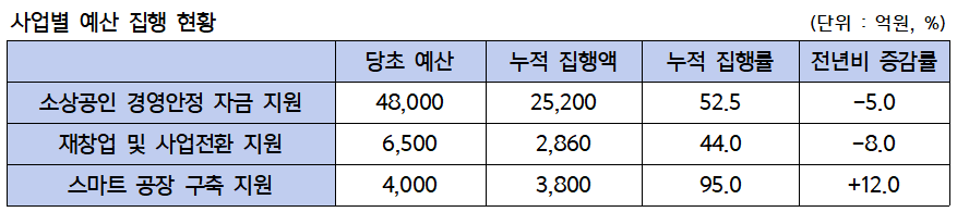 • 중기부 '소상공인 경영안정 자금 지원' 등 위기 극복 사업의 누적 집행률 52.5%로 저조