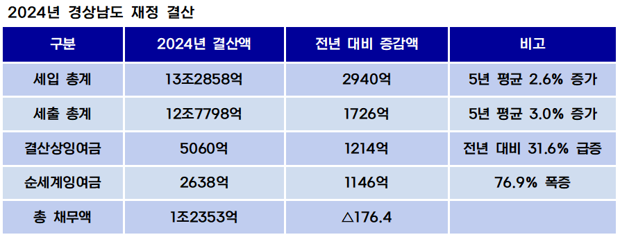 • 2024회계연도 경상남도 결산서 세입세출결산 요약