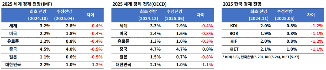 올 하반기 한국 경제에서 가장 큰 리스크 중 하나는 미국과의 상호관세 갈등이다. 미국은 한국을 포함한 주요 교역국에 25%의 상호관세를 부과할 예정이며 이는 한국의 주요 수출 주력 업종에 직접적인 타격을 줄 수 있다. 특히 자동차, 반도체, 철강 산업이 큰 영향을 받을 것으로 보인다. 이들 업종은 미국 시장 의존도가 높아 관세 부과로 인해 수익성에 압박을 받을 전망이다.