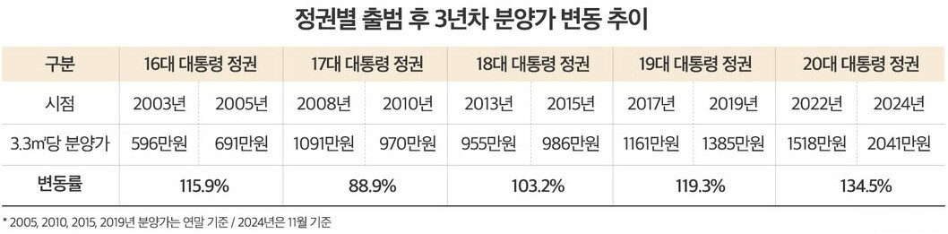 ■ 데이터로 본 분양가: 2년 6개월 만에 34.4%↑…문재인 정부 상승분의 1.8배