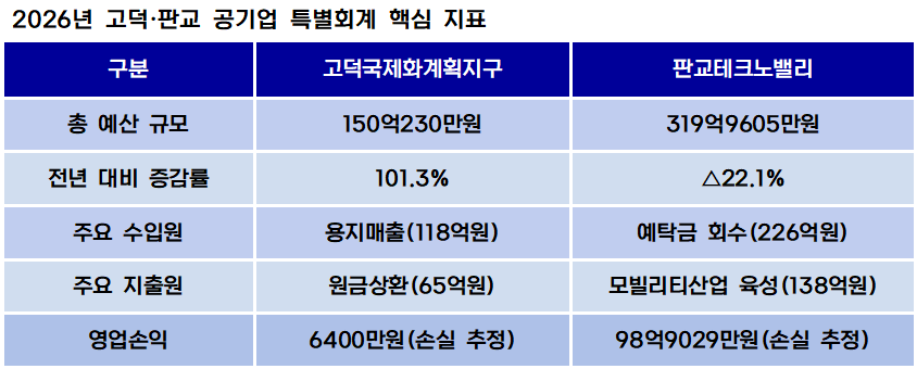 • 2026년 판교테크노밸리 조성사업 공기업 특별회계 예산안