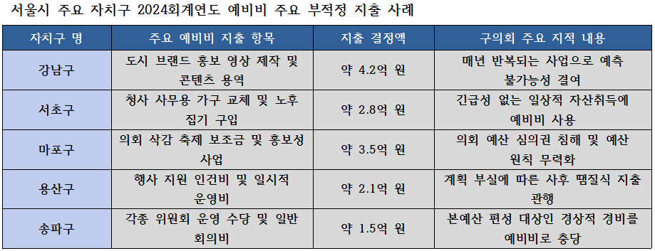 예결신문 - [연말 특집: 2025 지방 재정 실태] ② 강남·서초·마포 ′예비비′ 실체⸱⸱⸱비상금인가 쌈짓돈인가