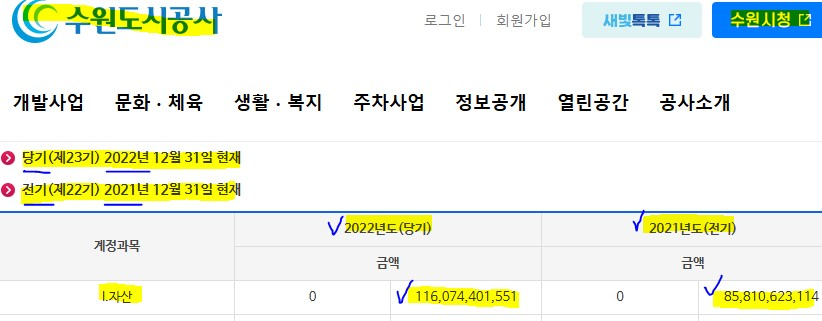 [화면 2]_수원도시공사 2021-2022년 재무상태표(BS)
