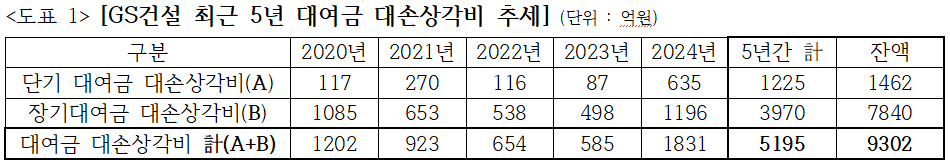 앞서 <본지>는 지난 7월 ‘GS건설, 알 수 없는 3.3조 원 천문학적 대여금 용처 '의구심'’이라는 제하의 기사에서 GS건설의 최근 5년간 대여금 잔액이 2020년 약 1.9조→ ’24년 3.3조원으로 4년 만에 무려 69.4% 급증한 추세와 관련, 대여금 사용처에 대한 의혹을 제기한 바 있다.