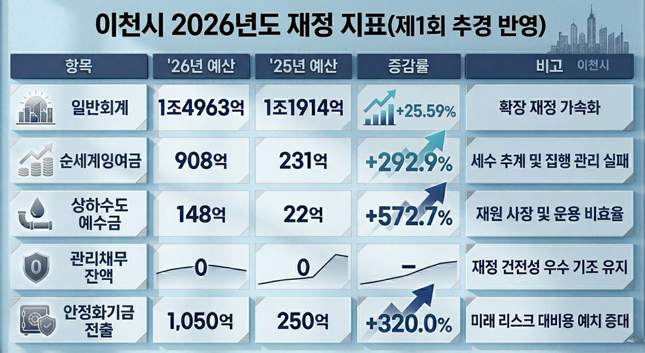 이천시의회는 거시적 관점에서 특정 분야에 편중된 SOC 투자와 집행 부진으로 인한 재정 사장 문제를 시 재정 운영의 최대 리스크로 규정했다.