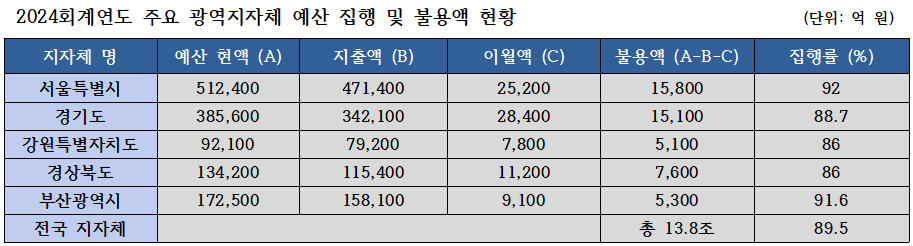 예결신문 - [연말 특집: 2025 지방 재정 실태] ① 곳간 비었다더니⸱⸱⸱′불용액 14조′에 잠든 민생 예산