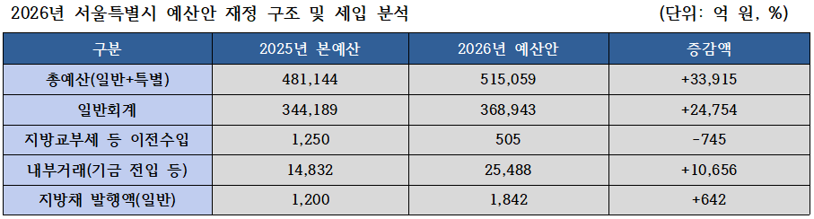 예결신문 - [서울시 2026년 예산 분석 上] ′51조 시대′의 재정적 착시⸱⸱⸱빚 없는 건전 예산의 이면