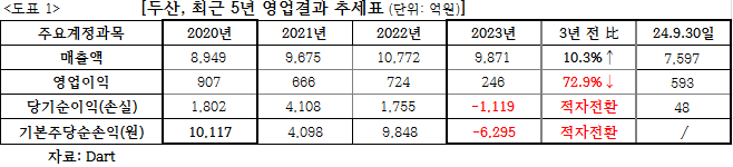 이에 <본지>는 박 회장이 그룹 계열사에 별도의 회장이 존재함에도 불구, 두산 측이 주장한 “박 회장 보수액 산정기준의 경영실적은 연결기준”이라는 주장에 대해, 박 회장의 보수액이 과연 ‘3년 반 새 9배’ 증가시킬 정도인지 여부를 살펴보기 위한 그룹의 경영실적을 들여다 봤다<도표 4>.