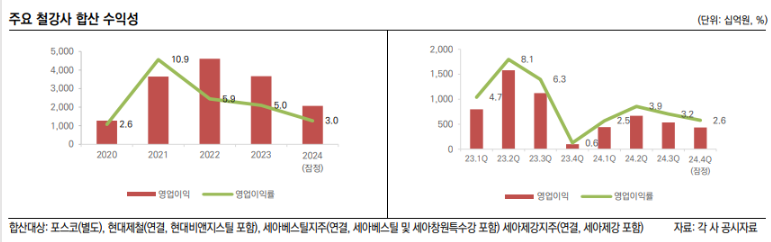 양대 일관제철사(포스코·현대제철)는 중국과의 경쟁이 심화된 품목에서 수익성 저하가 두드러졌으나, 채산성이 높은 자동차용 냉연에서 양호한 마진을 확보, 일정 수준의 이익창출력을 유지했다.