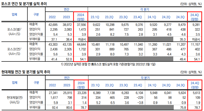 특수강 업체(세아베스틸, 세아창원특수강)의 경우, 부진한 업황에서도 3분기까지 양호한 영업이익을 나타냈다. 하지만 4분기 상당 규모의 영업적자를 기록, 연간 기준 저조한 수익성을 보였다.