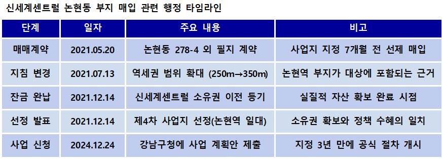 예결신문 - [역세권 개발의 명암 ①] 신세계 논현동 부지 매입과 정책 발표의 기묘한 동행