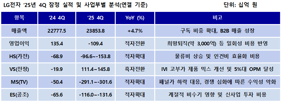 예결신문 - [심층기획] LG전자, 2026년 증익 전환 위한 체질 개선 上⸱⸱⸱4분기 대규모 적자 원인과 올해 전망은?