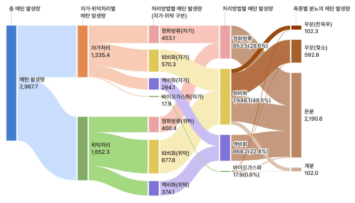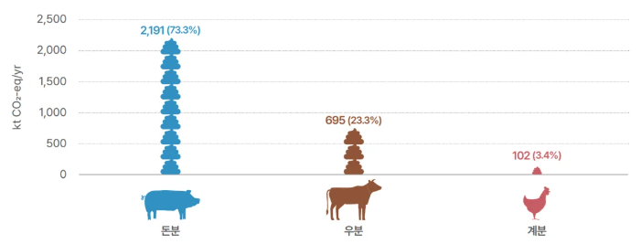 국내 최초 가축분뇨 처리 전 과정 분석 결과 메탄 배출 1위는 돼지(73%)