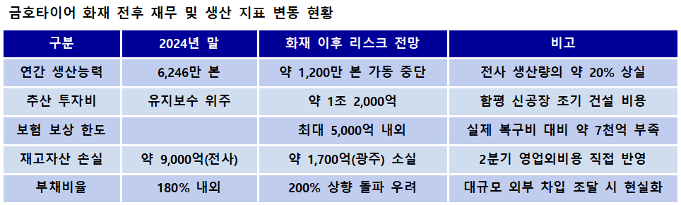 예결신문 - 금호타이어 광주공장 화재, 1.2조원대 재건 비용에 재무 리스크 현실화