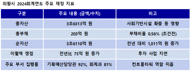 예결신문 - [의왕시 2024 결산] 上 자산 3.6조 ′건전성′ 합격점⸱⸱⸱′관행적 이월′은 숙제