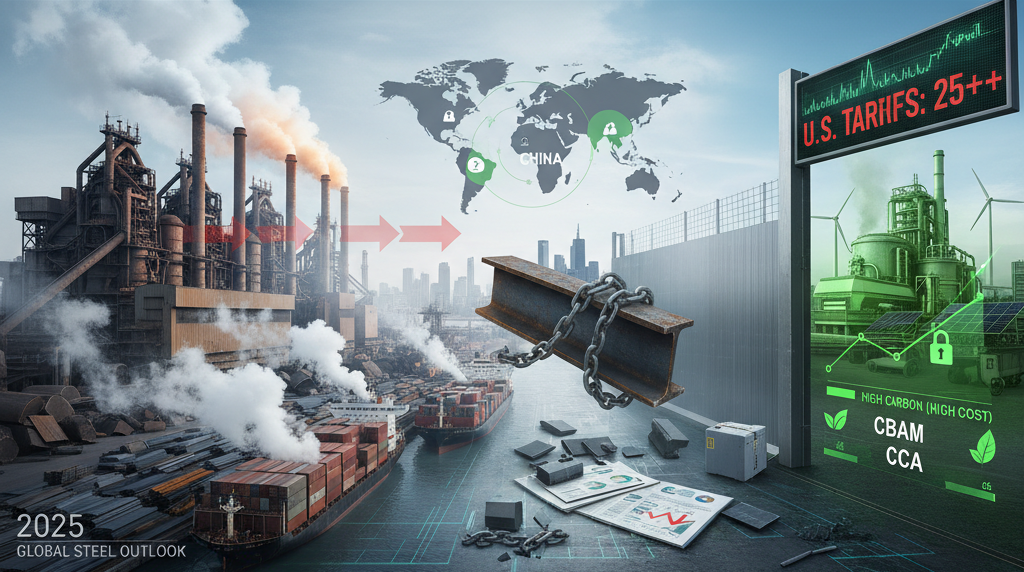• 미국 232조·트럼프 2기 고율 관세, EU CBAM·미국 CCA 등 통상·탈탄소 규제가 겹쳐 철강 가격은 지역·규제에 따라 갈라지는 구조가 굳어지고 있다.