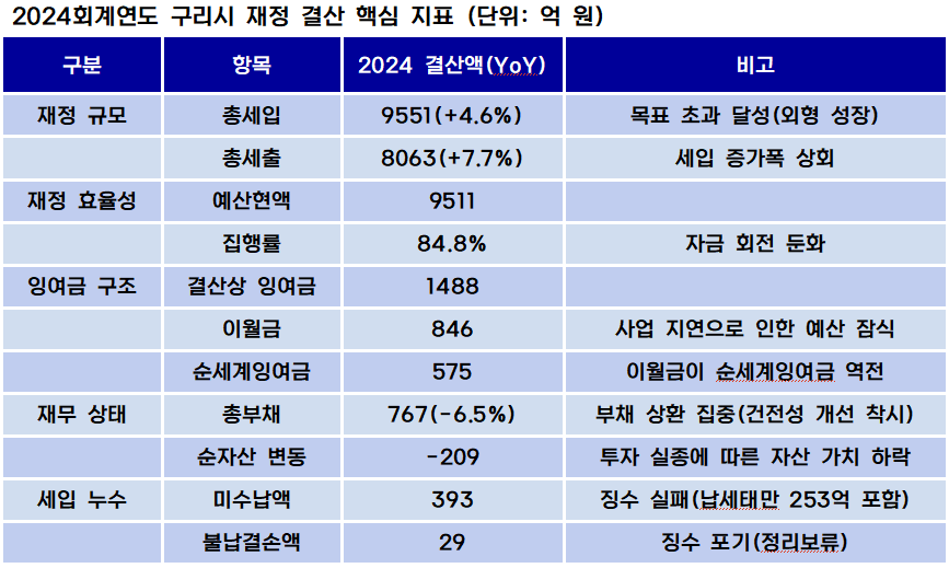예결신문 - [구리시 2024결산 上] 1488억 멈춰선 구리시⸱⸱⸱빚 갚느라 ′미래 자산′ 209억 증발