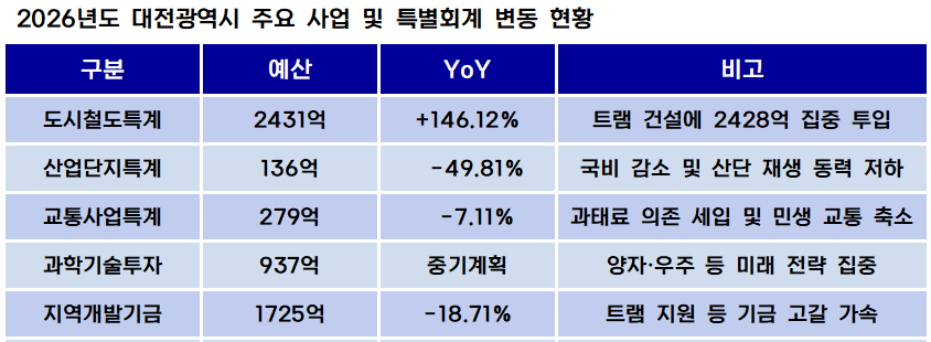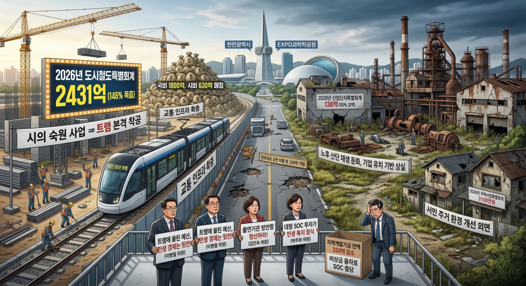 예결신문 - [대전시 2026 예산분석] ② ′트램′에 쏠린 2430억⸱⸱⸱반토막 난 산단 예산과 주거 복지 후퇴