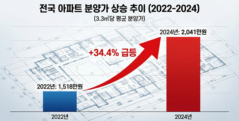 [예결신문=백도현 기자] 윤석열 정부 출범 이후 전국 아파트 분양가가 30% 넘게 치솟으며 역대 정부 중 가장 가파른 상승세를 기록했다. 이는 글로벌 인플레이션에 따른 자재비 인상뿐만 아니라 고금리, 안전·환경 기준 강화 등 구조적 요인이 복합적으로 작용한 결과로 분석된다. 업계에서는 "분양가 상승이 일시적 현상이 아니라 '뉴노멀(New Normal)'이 되면서 서민들의 주거 사다리가 끊어질 위기에 처했다"는 경고가 나온다.