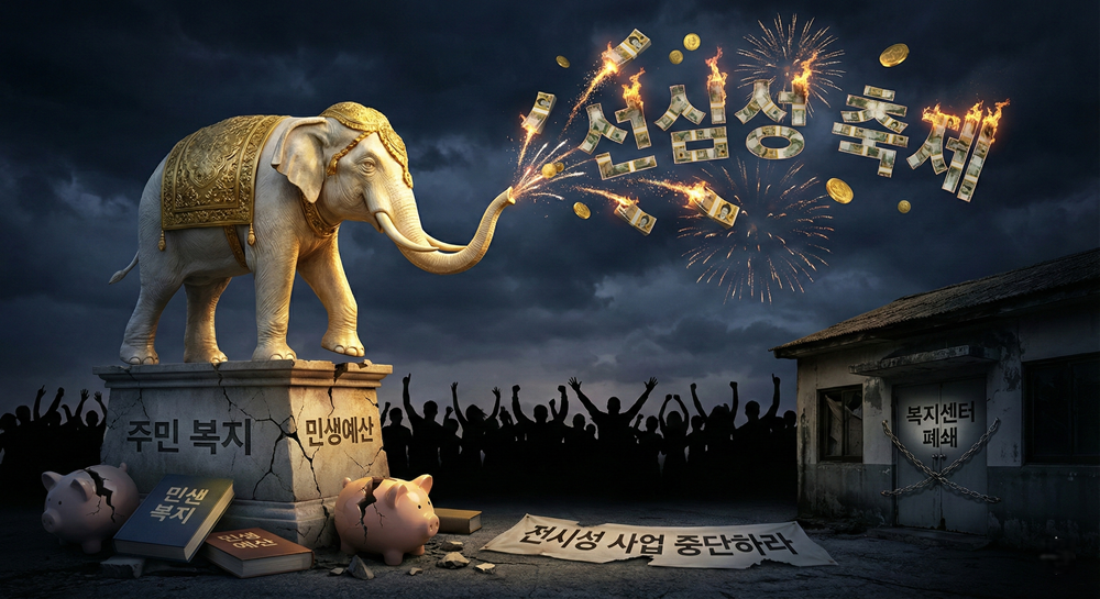 [예결신문=백도현 기자] 대한민국 지방자치단체들이 '세수 결손'이라는 사상 초유의 재정 위기 속에서도 결코 포기하지 않는 성역이 있다. 바로 지자체장의 치적 쌓기용 '선심성 축제'와 '전시성 토목 사업'이다.
