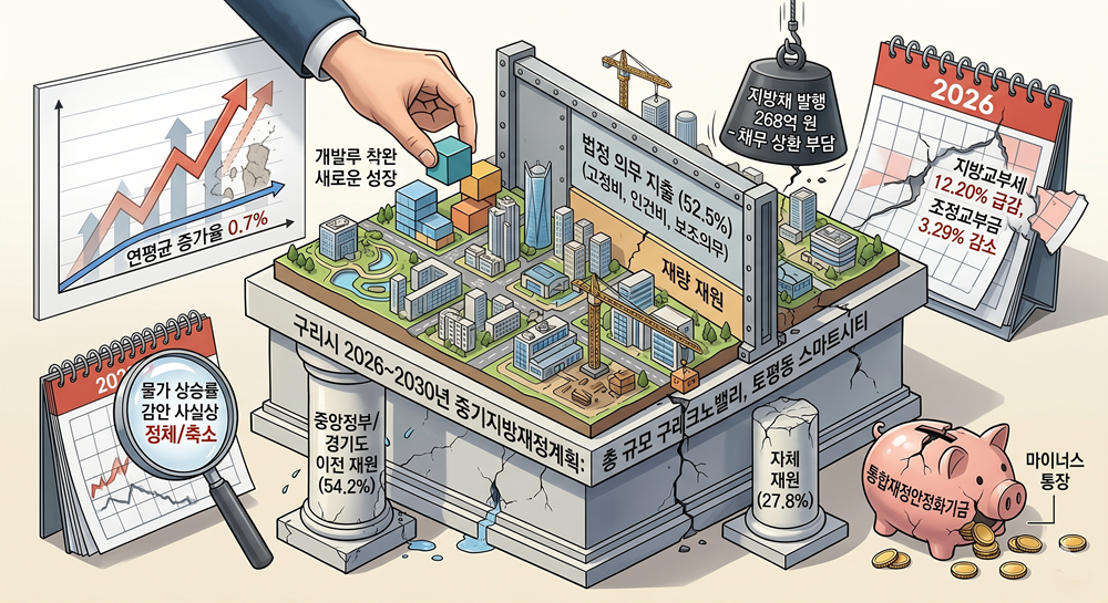 그럼에도 시는 구리테크노밸리, 토평동 스마트시티, 철도·도로·공원 인프라 확충, 사회안전망 강화 등을 중기 재정 운용의 핵심 축으로 제시했다. 인창천 생태하천 복원, 버스 공영차고지, 장애인복지회관 건립 등이 주요 재정 수요로 꼽혔다.