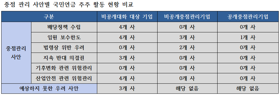 반면 국민연금은 공개 중점관리 기업 지정 전까지 모든 과정을 비공개로 부치고 있어 수탁자로서 적절한 역할을 수행하고 있는지 검증조차 불가능한 상황이다.