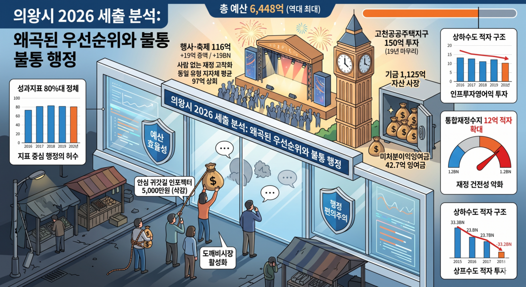 반면, 116억원에 달하는 행사·축제 경비는 전년 대비 19억원이나 증액되며 '사람'이 없는 재정 구조를 고착화하고 있다는 지적이 제기됐다. 6448억원의 최대 예산이 편성됐음에도 정작 시민들이 직접 제안한 생활 밀착형 사업은 예산의 문턱을 넘지 못하며 '불통 행정'이라는 비판을 피하기 어렵게 됐다.