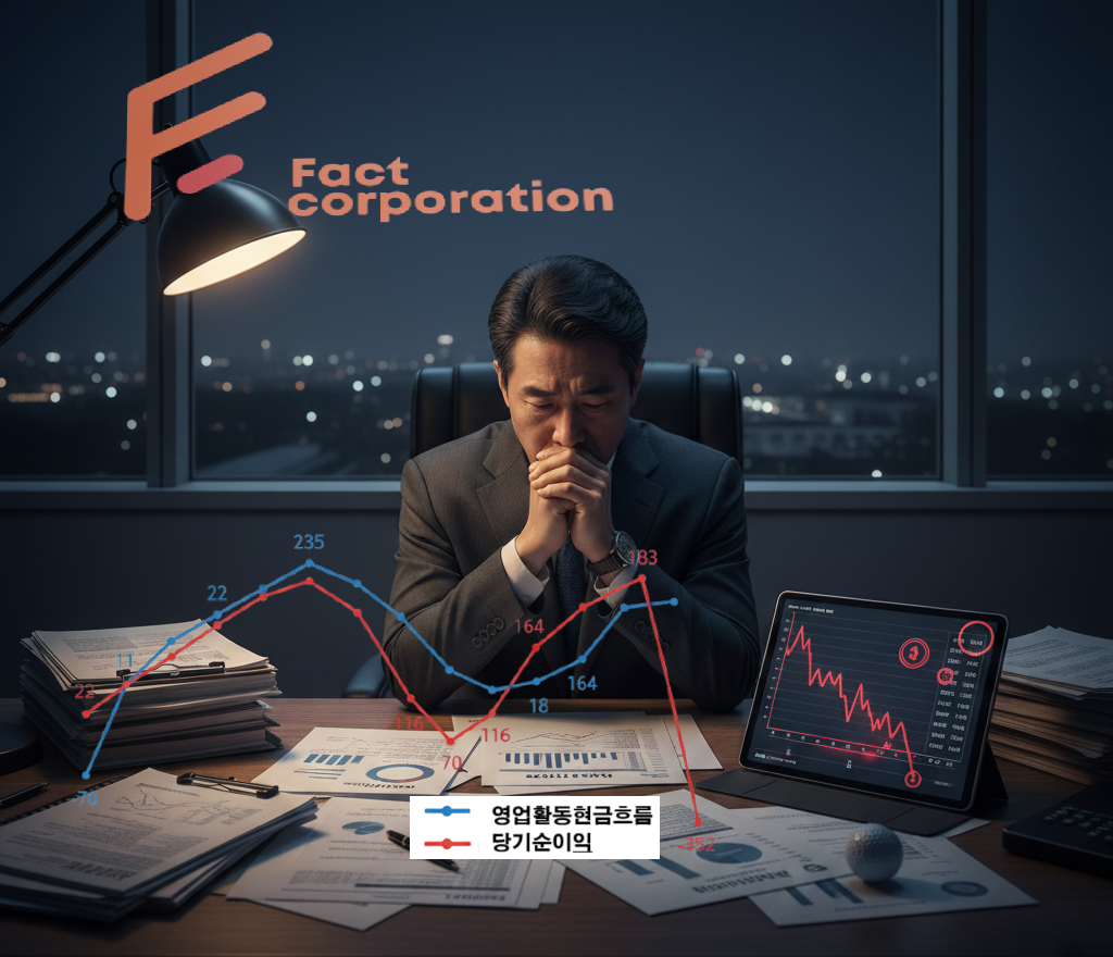 팩트社의 영업활동현금흐름은 2021년 11억원→ 2022년 235억원→ 2023년 164억원을 기록하면서 3년간 합산 금액이 410억원에 달할 정도로 정상적 흐름을 나타냈다.