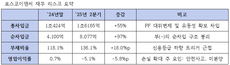 국내 건설재무 전문가들은 “안전관리 실패가 재무리스크로 전이된 대표적 사례”로 분석한다. 한 금융권 관계자는 “포스코이앤씨는 과거 포스코건설 시절에도 안전관리 이슈가 잦았다”며 “중대재해로 공사 중단이 반복되면 신용도와 PF 차환 여건 모두 악화될 수 있다”고 말했다.