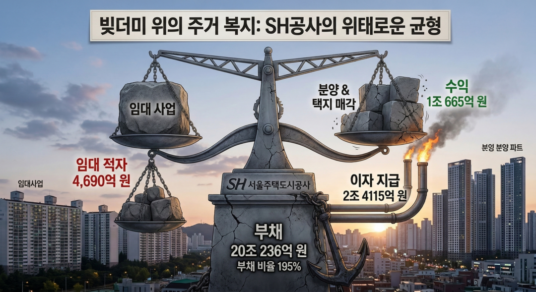 24일 예결신문이 SH의 2024년 결산서와 서울시의회 주택공간위원회 자료를 분석한 결과 SH의 주거 복지 핵심인 임대 사업은 매출 2148억원에 그친 반면 매출원가는 6838억원에 달해 영업 총이익에서 4690억원의 대규모 손실을 냈다. 서민 임대료를 낮게 유지하기 위한 이 '착한 적자'를 SH는 분양 및 택지 매출(1조665억원)에서 발생한 이익으로 상쇄하고 있다.