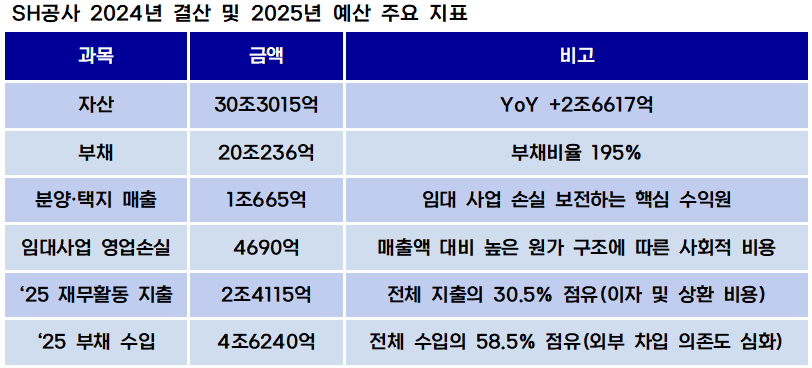 물론 일각에서는 SH의 임대 사업 적자를 단순한 손실로 치부해서는 안 된다고 강조한다. 서울시민의 주거권을 보호하기 위한 사회적 비용이라는 이유다. 다만 이 투자가 지속되려면 재무 관리의 효율성을 극대화하고 통합회계 기준의 정밀한 지표를 통해 실제 현금 흐름과 부채 상환 능력을 연결한 리스크 관리가 필요하다는 지적이 나온다.
