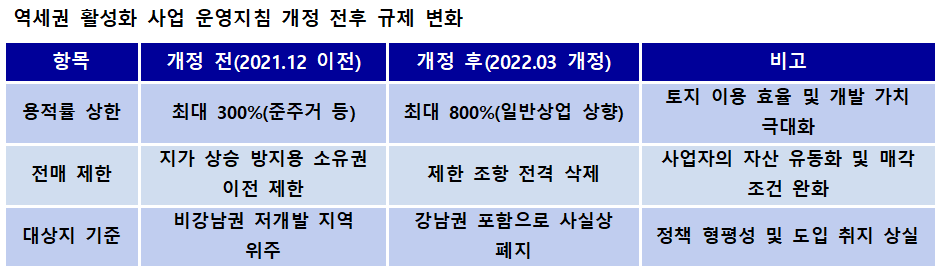 가장 심각한 법리적 쟁점은 2022년 3월에 이뤄진 운영지침 개정이다. 개정 전 지침에는 '역세권 활성화 사업 대상지 지정 후 지가 상승을 노린 투기를 방지하기 위해 일정 기간 소유권 이전을 제한한다'는 조항이 명시돼 있었다. 하지만 신세계센트럴이 소유권을 확보한 지 불과 3개월 만에 이 조항은 삭제됐다.