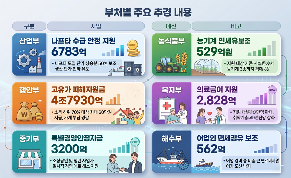 정부는 확정된 예산을 바탕으로 ▲산업통상자원부 ▲농림축산식품부 ▲중소벤처기업부 ▲행정안전부 ▲보건복지부 ▲해양수산부 등 주요 부처를 통해 민생 안정 대책을 신속히 집행할 방침이다.