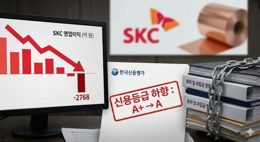 한국신용평가 등 주요 신용평가사는 2일 SKC의 무보증사채 신용등급을 기존 'A+(부정적)'에서 'A(안정적)'로 하향 조정했다. 이차전지 및 반도체 사업 구조 전환 과정에서 생긴 수익성 저하가 원인으로 분석된다.