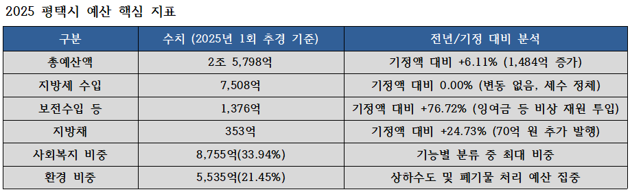• 평택시 2025년 예산 2조5798억⸱⸱⸱커진 외형에도 지방세 수입은 0% 성장, 세수 기반 약화