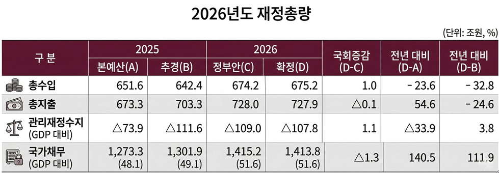 예결신문 - [2026년 나라살림] 적자폭 개선에도 국가채무 1413.8조 돌파⸱⸱⸱′의무지출′ 증가