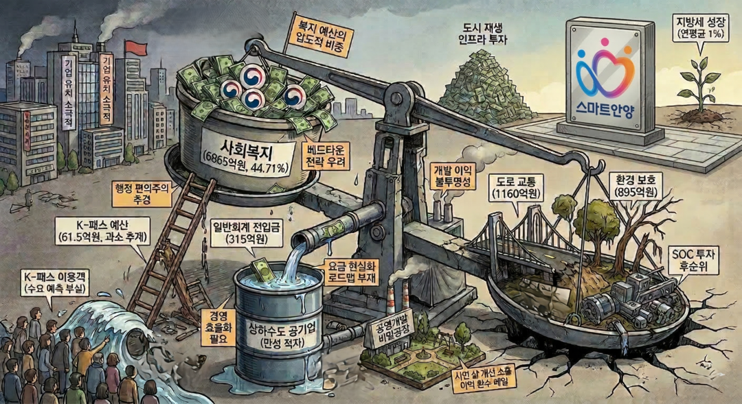 [예결신문=김대성 기자] 안양시 2025년 세출 구조의 핵심은 '복지 예산의 압도적 비중'과 '민생 사업의 정밀도 부족'으로 요약된다.