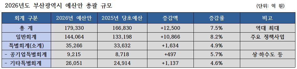 • 부산시 2026년도 일반회계 및 특별회계 예산안